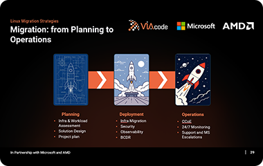 In this on-demand webinar, experts from Microsoft, AMD and VIAcode break down how organizations are successfully migrating Linux workloads to Azure while improving performance, reducing infrastructure costs and preparing for AI-driven workloads.